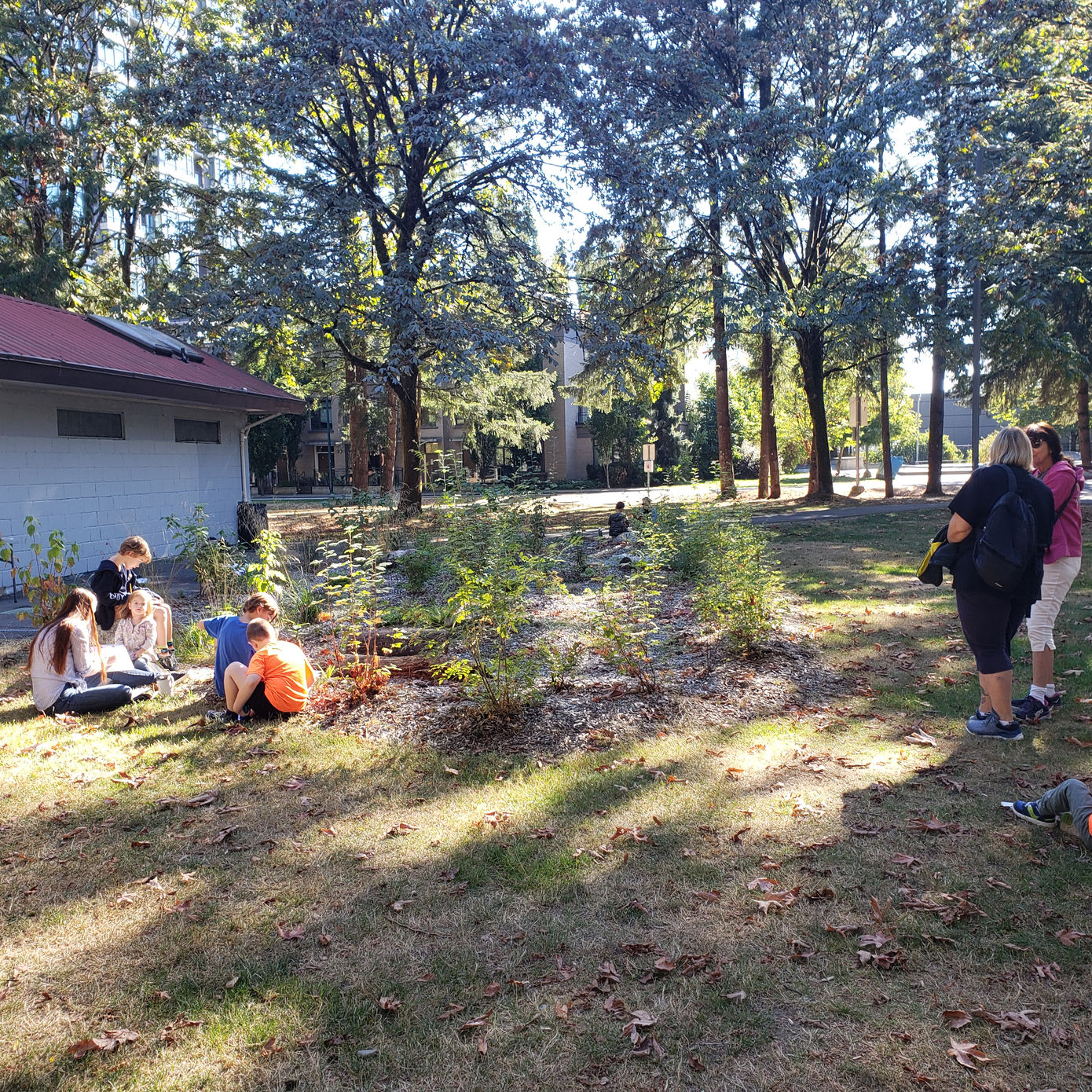 As part of my artist residency at Lions Park, I hosted Drawing with the Rain Garden sessions. This was an open-studio session, where participants were able to come and go as they please, and draw with the newly established rain garden. There were basic art materials, blank paper, and two different colouring page designs of plants from the rain garden. It was a more relaxed workshop that involved sitting around the garden, which allowed for more inclusivity and accessibility.