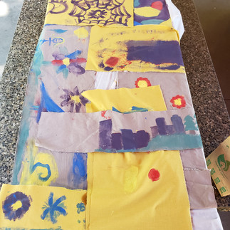 Over 10 weeks, community members, including youth and children contributed to making these very fun tree sweaters. Approximately 100 people took part, curating eco prints, painting pictures inspired by Lions Park, and helping me put together the actual sweaters! It was a big community effort, where we all got to work together to create this. It's a connected project- each workshop focused on a different stage of the installation.